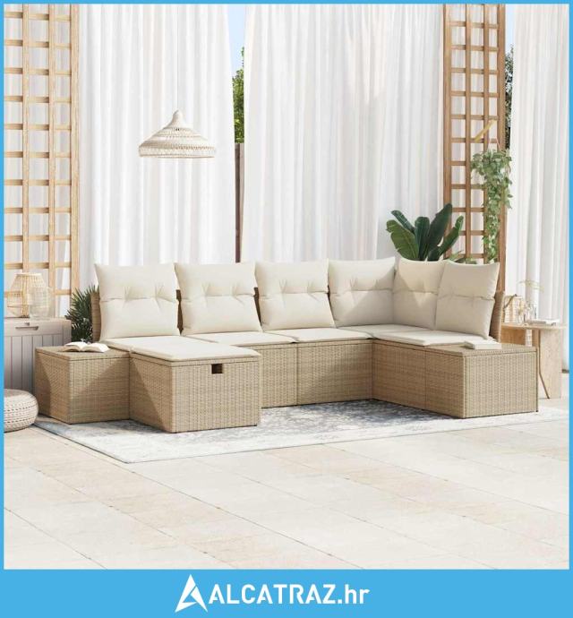 set od 6 dijelova vrtnih kauča s jastučićima Bež Poli Ratan - NOVO