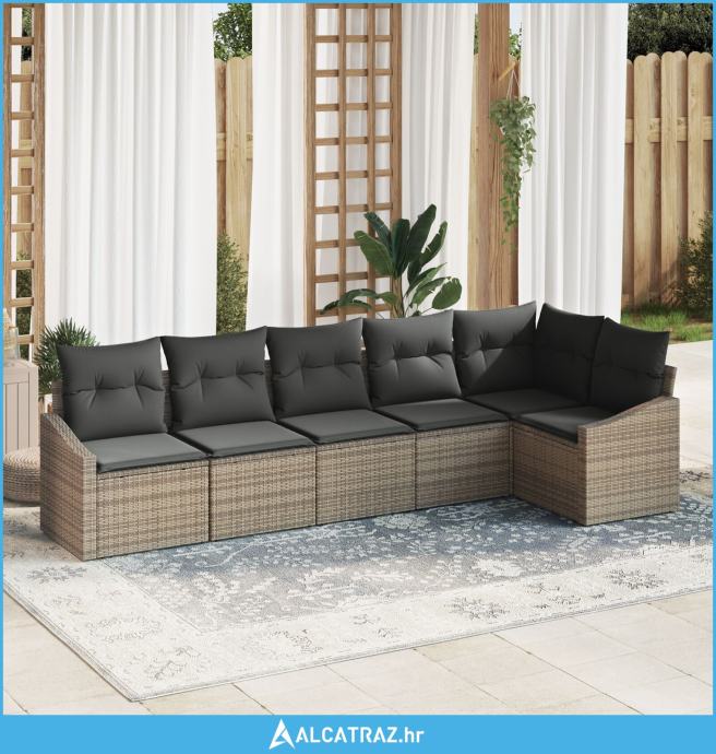 set od 6 dijelova vrtnih kauča s jastučićima siva poli ratan - NOVO