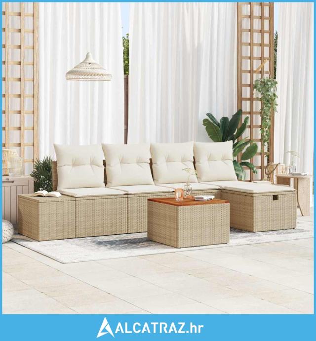 set od 6 dijelova vrtnih kauča s jastucima bež poli ratan - NOVO