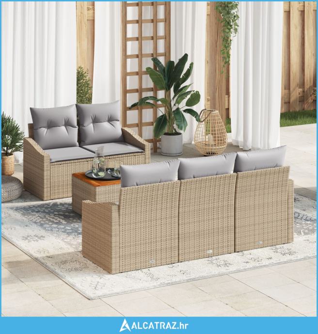 set od 6 dijelova vrtnog kauča s jastučićima bež poli ratan akacija -