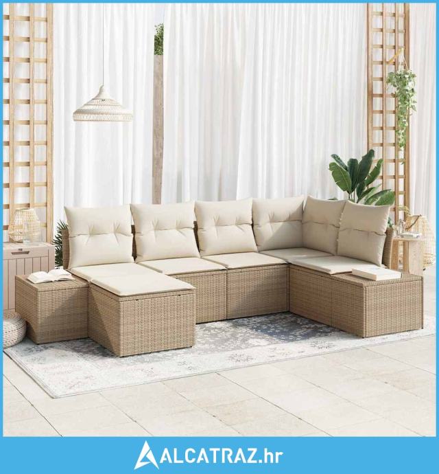 Set od 6 dijelova vrtnog kauča s jastučićima Bež Poli Ratan - NOVO