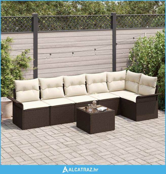set od 6 dijelova vrtnog namještaja s jastučićima smeđi poli ratan - N
