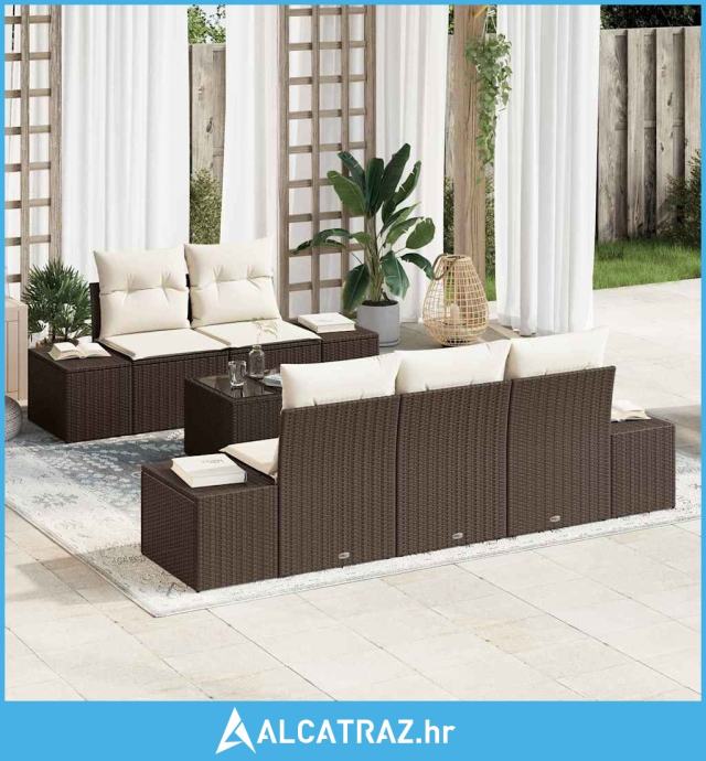 set od 6 dijelova vrtnog sofe s jastučićima smeđi poli ratan - NOVO