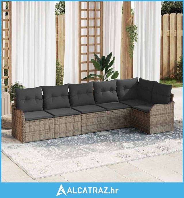set od 6 komada kauča za vrt s jastučićima, sivi poli ratan, kauč za v