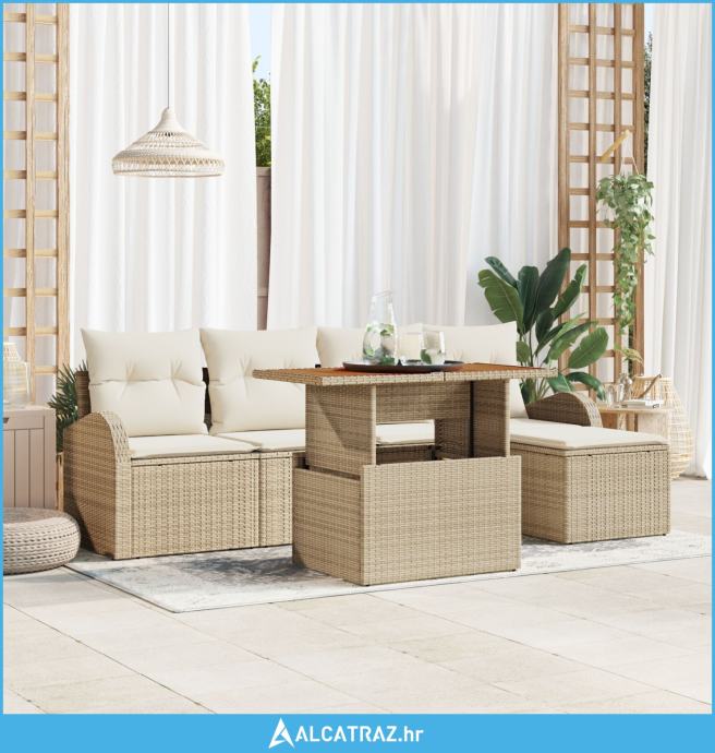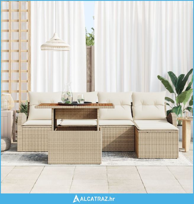 set od 6 vrtnih garnitura s jastučićima bež poli ratana akacije - NOVO