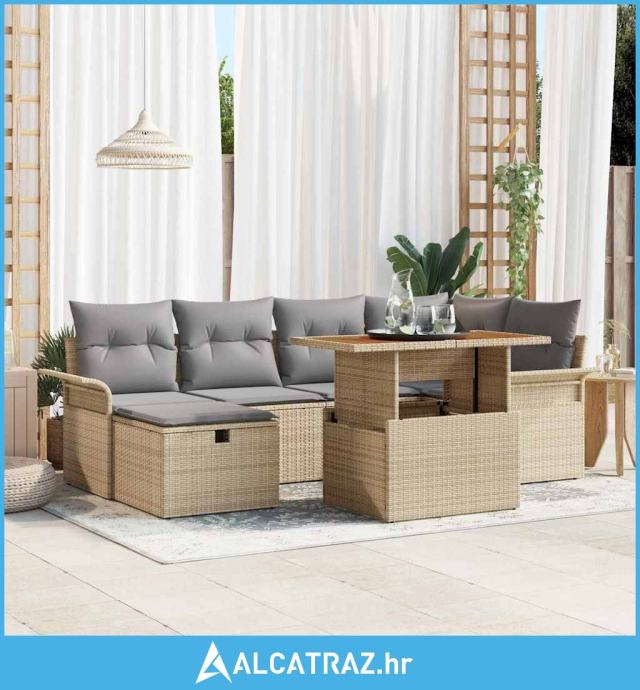 Set od 7 dijelova vrtne garniture s jastučićima Bež Poli Ratan - NOVO