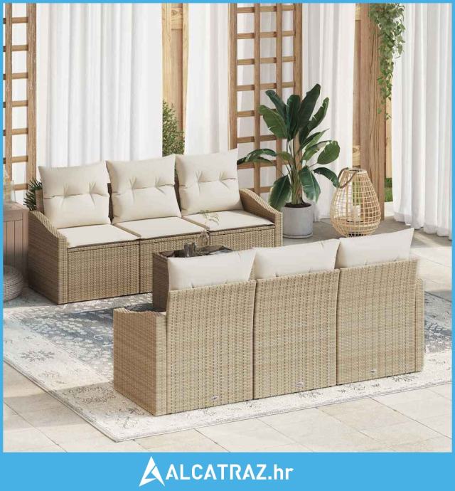 Set od 7 dijelova vrtne sofe s bež jastučićima od poliratana - NOVO