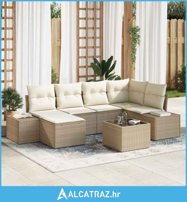 set od 7 dijelova vrtnih kauča s jastučićima Smeđa Poli Ratan - NOVO