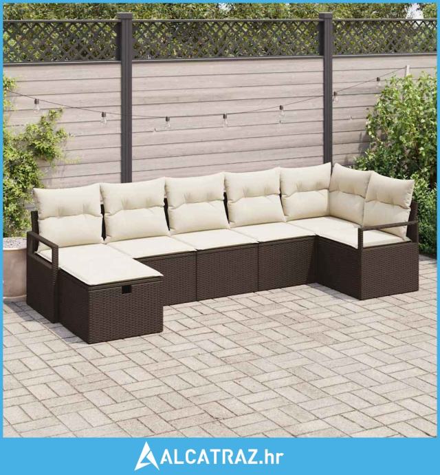 set od 7 dijelova vrtnih kauča s jastučićima smeđi poli ratan - NOVO