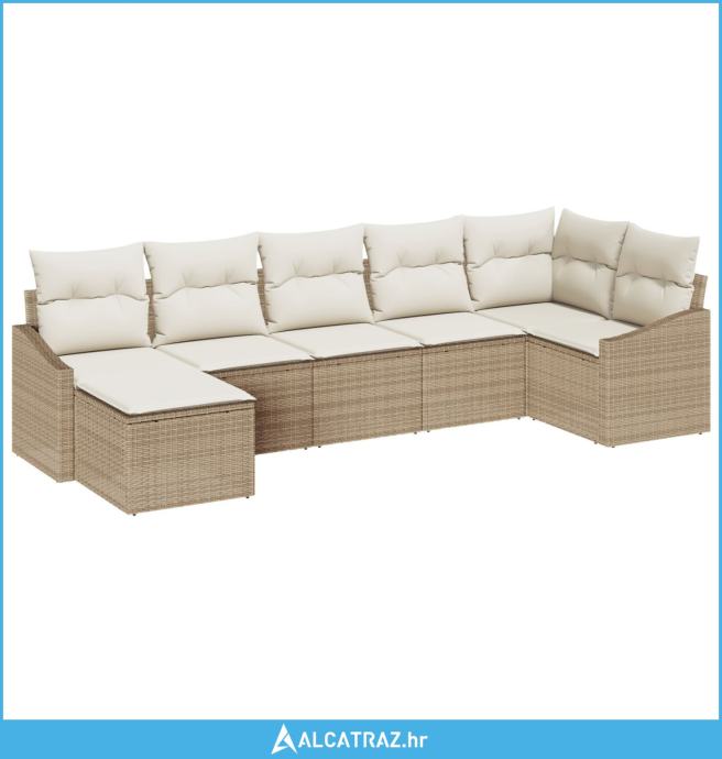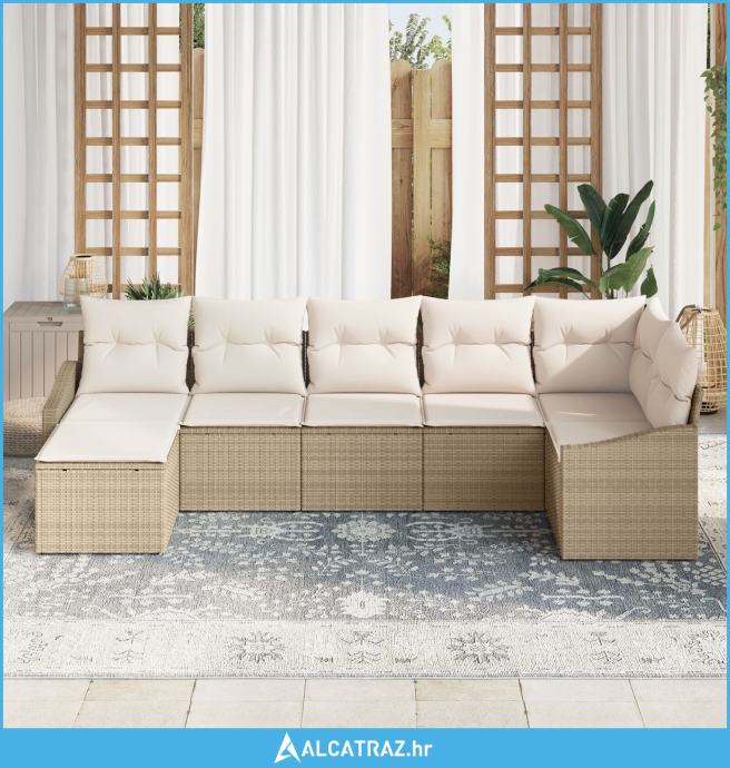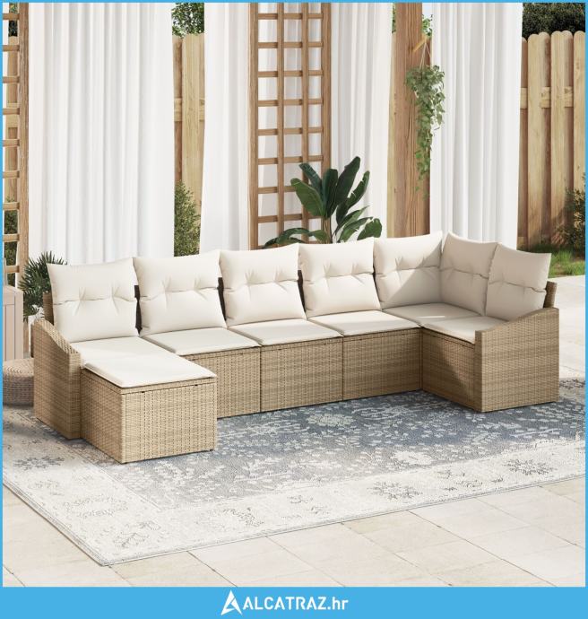 Set od 7 dijelova vrtnog kauča s jastučićima bež poli ratan - NOVO