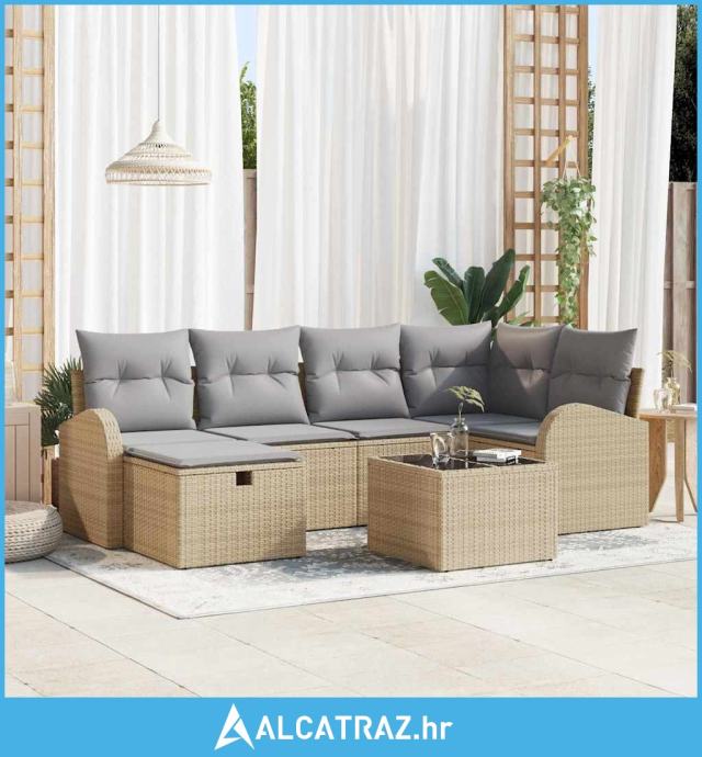 set od 7 dijelova vrtnog kauča s jastučićima bež poliratanski - NOVO