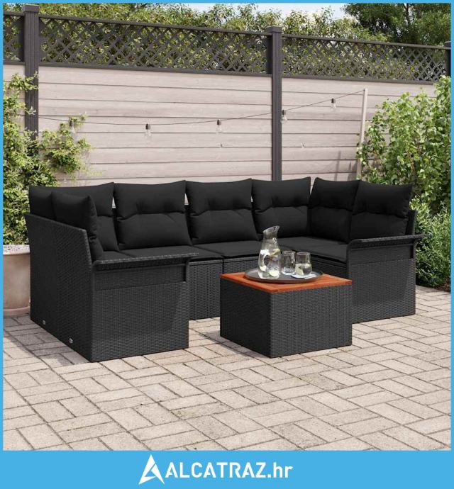 set od 7 dijelova vrtnog kauča s jastučićima crni poli ratan akacija,