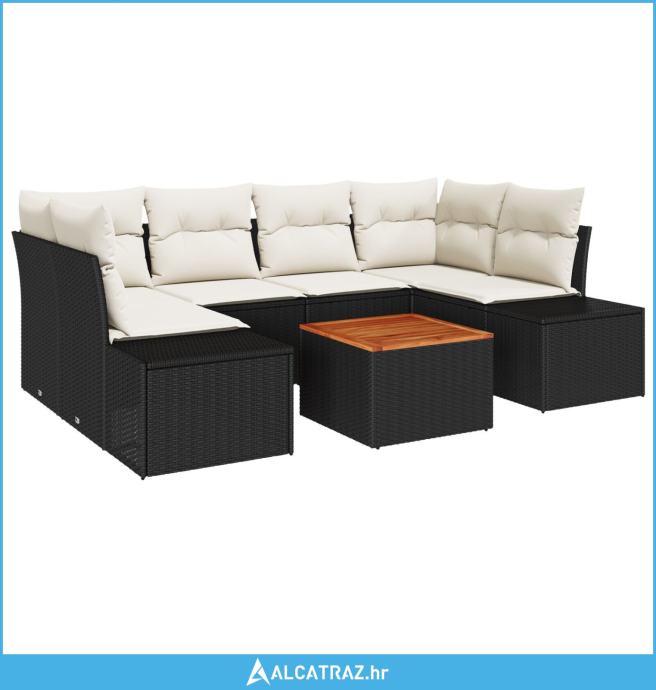 set od 7 komada vrtne sofe s jastučićima crni poli ratan akacija - NOV