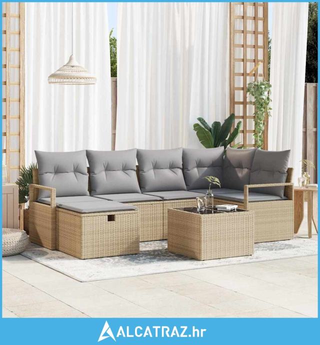 set od 7 komada vrtnih kauča s jastučićima bež poli ratan - NOVO