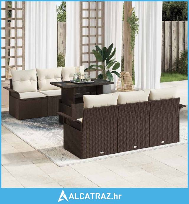 set od 7 komada vrtnih kauča s jastučićima smeđi poli ratan - NOVO