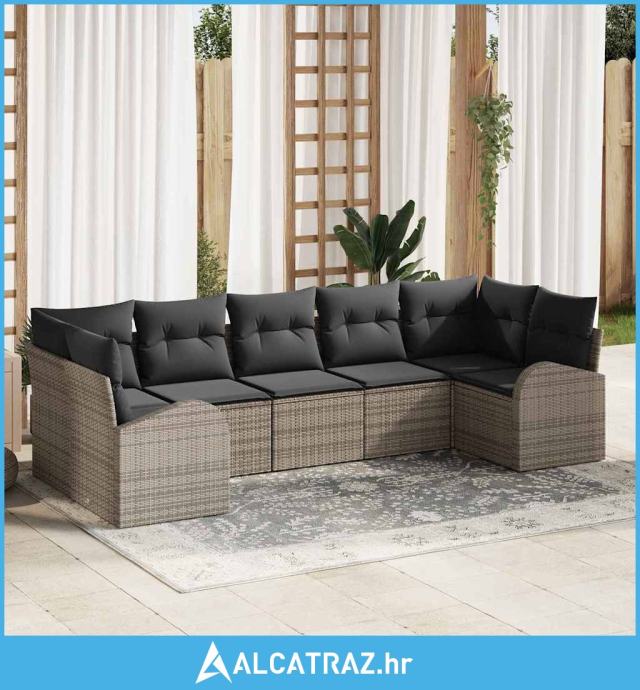 Set od 7 komada vrtnog kauča s jastučićima, siva poli ratan, Dvosačni