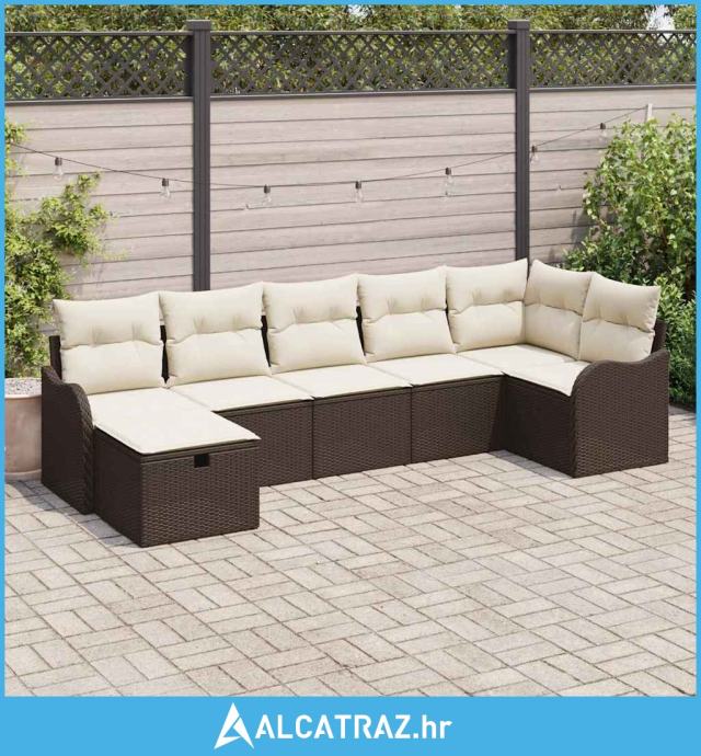set od 7 komada vrtnog kauča s jastučićima smeđi poli ratan, 2-sjedni