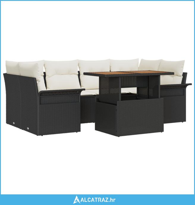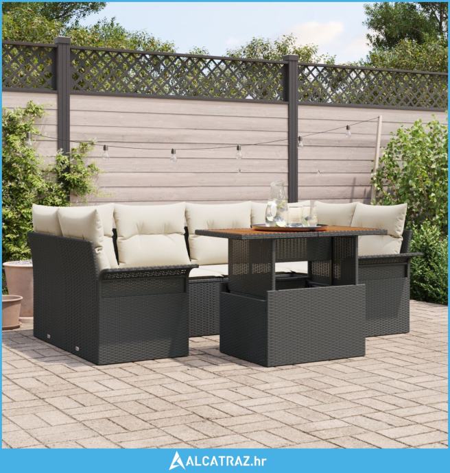 set od 7 vrtnih kauča s jastucima, crni poli ratan, akacija - NOVO