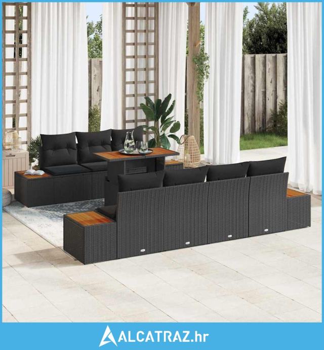 set od 8 dijelova vrtne sofe s jastučićima crnog poly ratana - NOVO