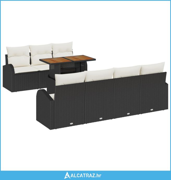 Set od 8 dijelova za vrtno objedovanje s jastučićima, crni poli ratan