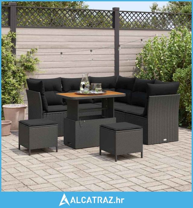Set od 8 dijelova vrtnog kauča s jastučićima crni poli ratan akacija,
