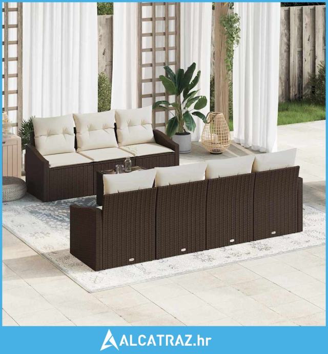 Set od 8 komada vrtne sofe s jastučićima smeđi poli ratan - NOVO