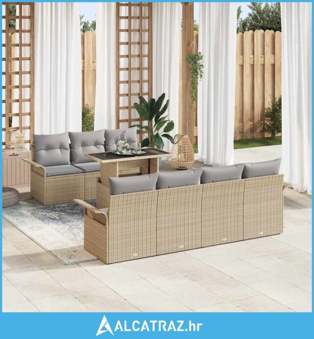 set od 8 komada vrtnih kauča s jastučićima bež poli ratan - NOVO