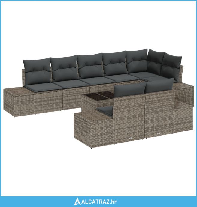 set od 8 komada vrtnih kauča s jastučićima siva poli ratan - NOVO
