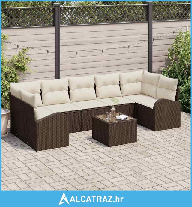 set od 8 komada vrtnih kauča s jastučićima smeđi poliratan - NOVO