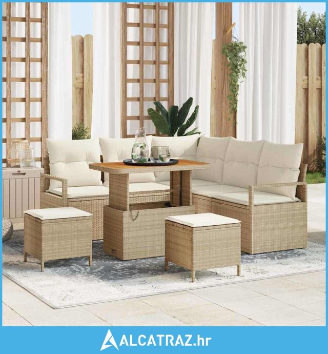 Set od 8 komada vrtnih sofa s jastučićima Bež poli ratan akacija - NOV