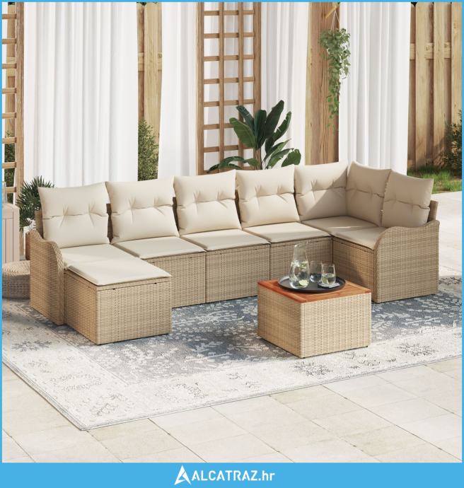 set od 8 komada vrtnog kauča s jastučićima bež poli ratan acacia, dvos