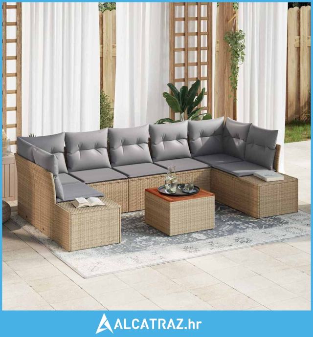 set od 8 vrtnih kauča s jastučićima bež poli ratan akacija - NOVO