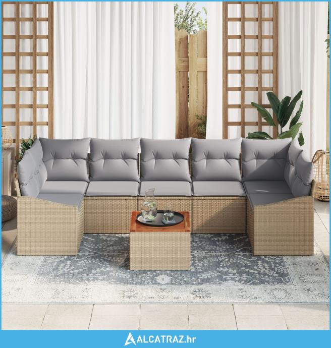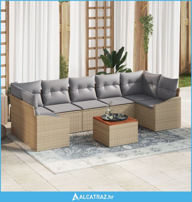 set od 8 vrtnih sofa s jastučićima bež poli ratan akacija - NOVO