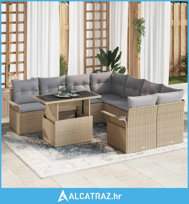Ovaj set od 9 dijelova je super opcija za vanjski namještaj koja spaja udobnost i stil, s elegantnim bež poli ratan završetkom. Savršeno za opuštanje ili zabavu, stvara ugodnu atmosferu na tvojoj terasi, vrtu ili balkonu, omogućavajući gostima da se opuste i uživaju. Zbog svog modularnog dizajna, možeš prilagoditi raspored sjedenja kako bi odgovarao različitim prostorima, savršeno za okupljanje ili obiteljska okupljanja.