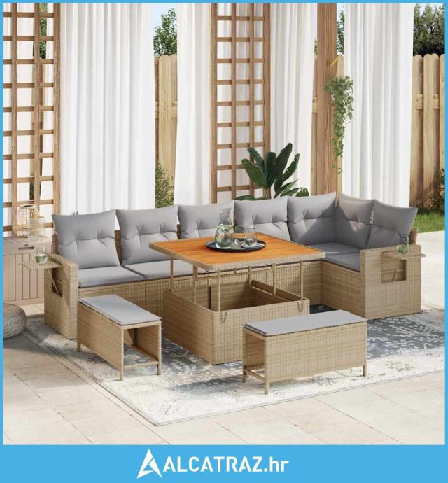 Set od 9 dijelova Vrtnih Kauča s jastučićima Bež Poli Ratan Akacija -