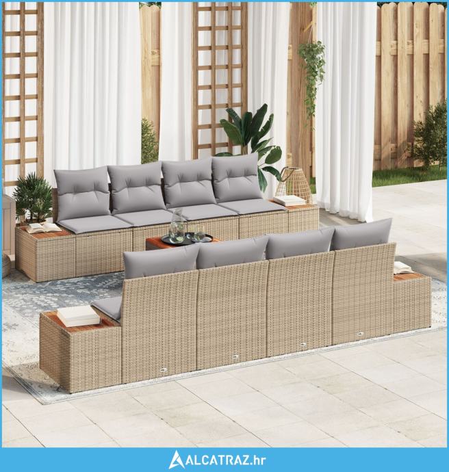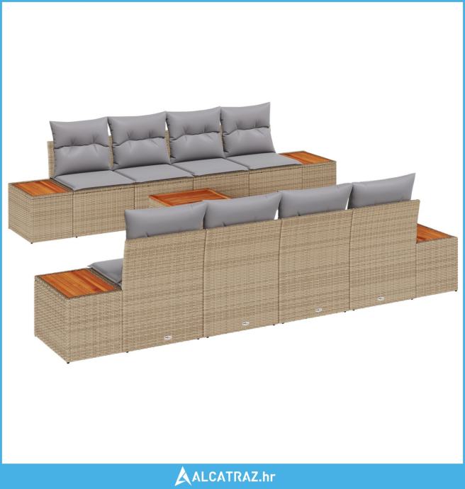 set od 9 dijelova vrtnog namještaja s jastučićima bež poli ratan akaci