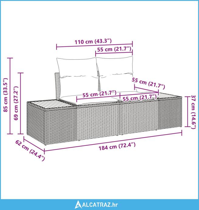 - Delivery Contains: 4 x Središnje sjedalo s pohranom, 4 x Sofa s pohranom, 1 x Vrtni stol
