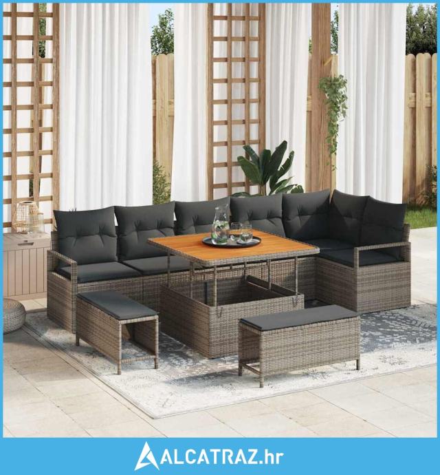 set od 9 komada kauča za vrt s jastucima siva poliratna akacija - NOVO