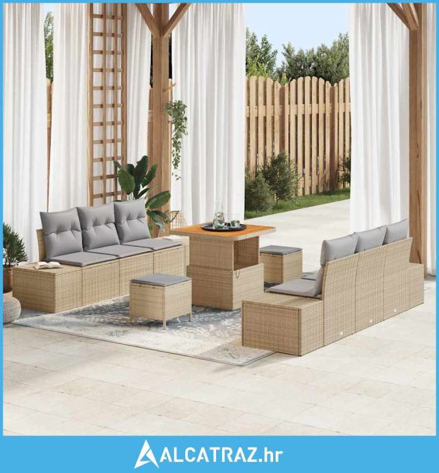 set od 9 komada vrtnih sofa s jastucima bež poliratan akacija, dvosed