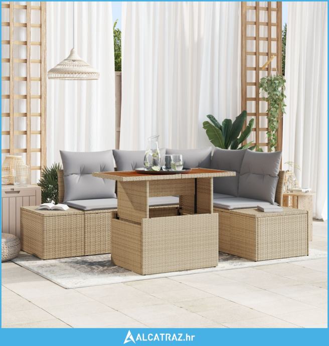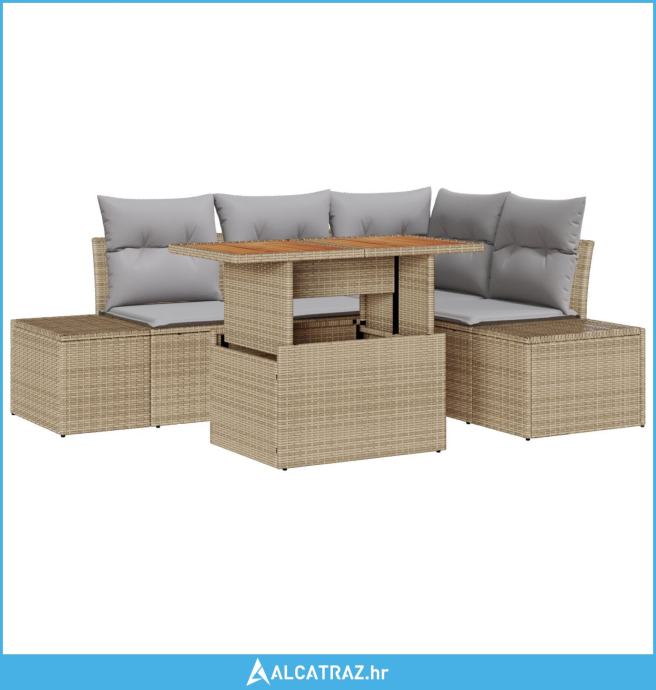 Set za blagovanje od 5 komada s jastučićima – Bež poli ratan akacija -