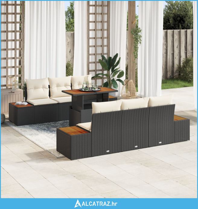 set za blagovanje od 7 dijelova s jastučićima crna poli ratan akacija