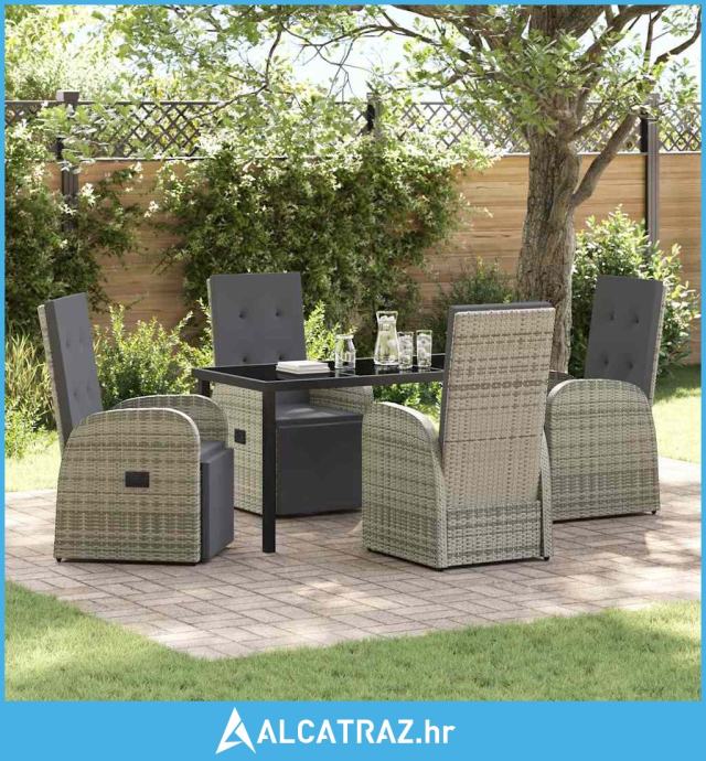 Set za blagovanje u vrtu od 5 dijelova s jastučićima sivo poli ratan -