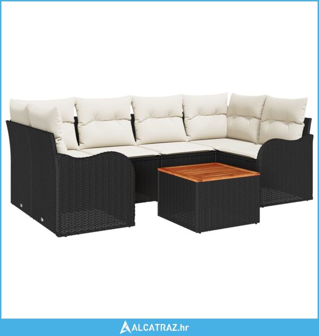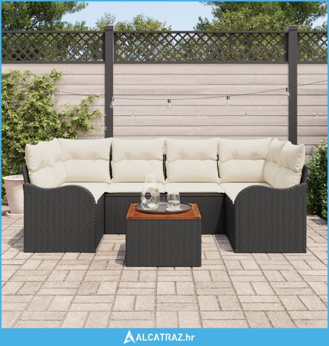 Set dvorišnih sofa od 7 dijelova s jastučićima Crni Poli Ratan Akacija