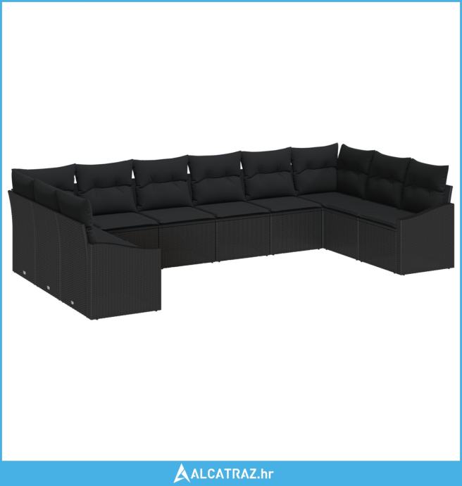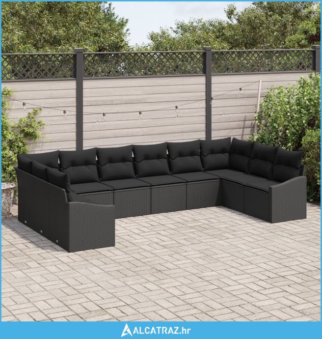 Set kauča za vrt od 10 komada s jastučićima Crni poli ratan - NOVO
