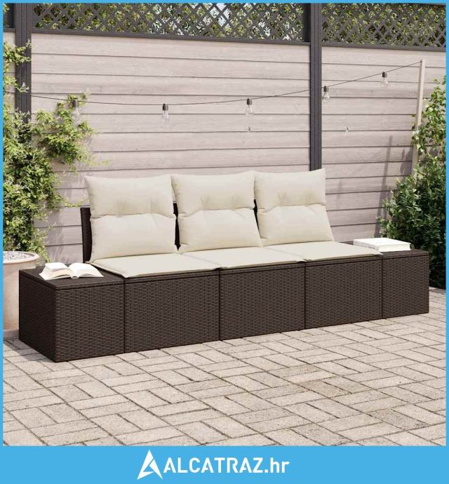set kauča za vrt od 3 komada s jastucima smeđa poli ratan - NOVO