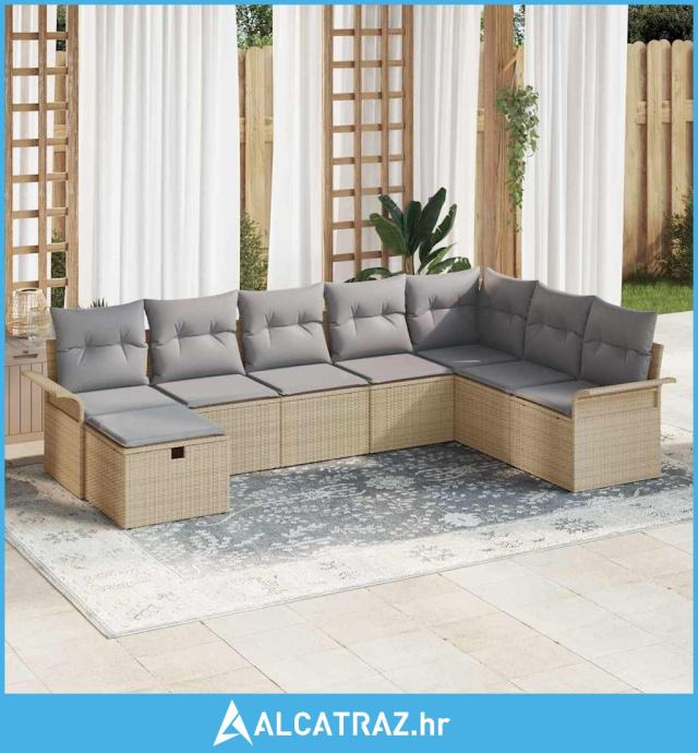 Set Kauča U Vrtu Od 8 Komada Sa Jastučićima Bež Poli Ratan - NOVO