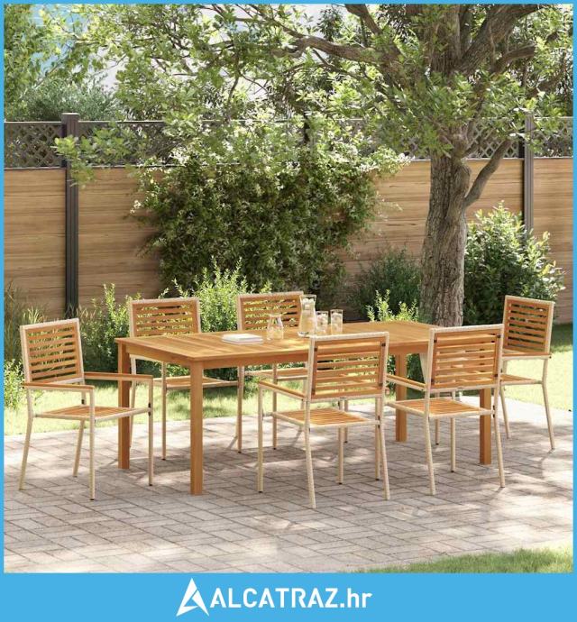 set za obedovanje u vrtu od 7 dijelova bež poliratan akacija - NOVO