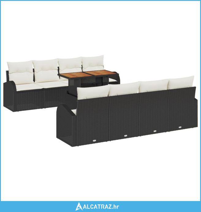 set za obedovanje u vrtu s 9 komada i jastučićima crna poli rattan aka
