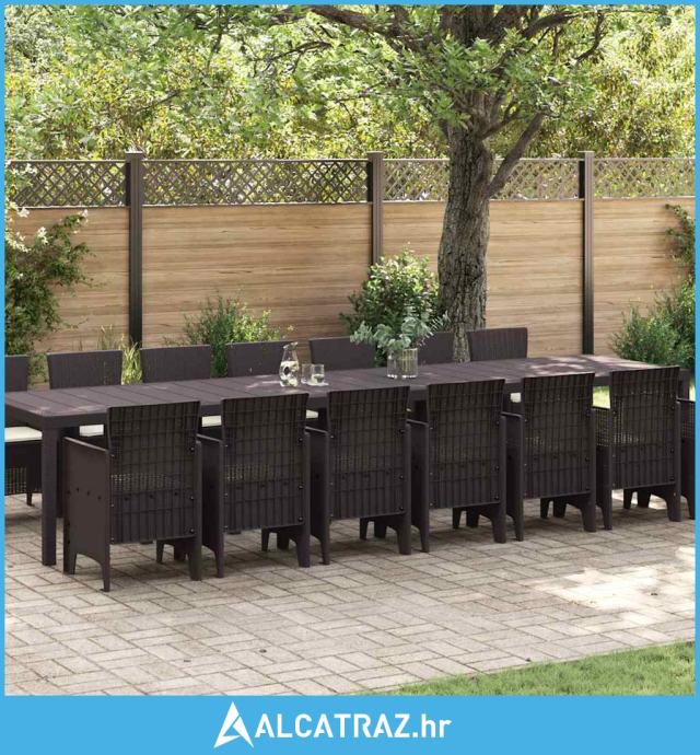 set za objed od 15 dijelova s jastučićima smeđi poli ratan, vrtni stol