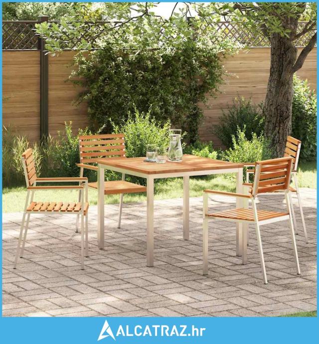 Ovaj set za objedovanje od 5 komada odlično je napravljen od čvrste tikovine, spajajući stil i praktičnost za vaše vanjske obroke. Moderni dizajn s rešetkastim detaljima vrlo je stilski i praktičan, savršeno prikladan za svaki obrok, bez obzira jeste li na balkonu, terasi ili u vrtu.